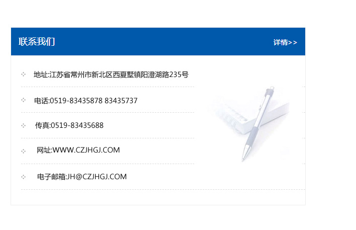 傳真:0519-83435688    郵編:213135    網址:WWW.czjhgj_com.ikaqu.com    電子郵箱:JH@czjhgj_com.ikaqu.com